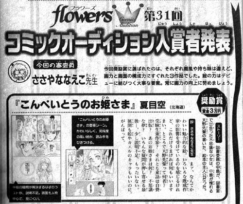 今回フラワーズは発投稿だったんですが、奨励賞を頂きました。